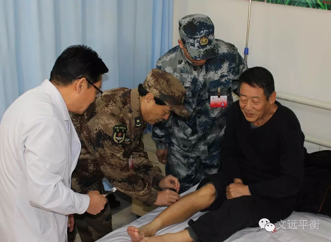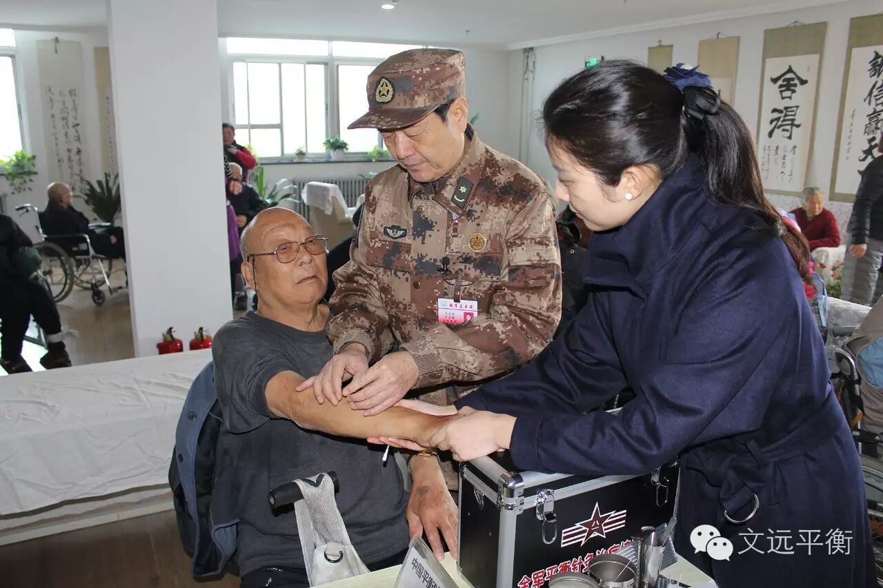 王教授耐心地询问每个老人的身体不适情况,并给他们认真分析及嘱咐注意事项。在义诊过程中,其中一位80岁坐着轮椅的大爷握着王教授的手很激动,他看着王教授一身戎马的军装,十分亲切,还回忆起曾经18年的从军生涯,辗转几个省市执行任务。现在年事已高的他,两膝发软,站立困难,几年以来主要依靠轮椅来代步,王教授分析那个年代的部队训练都是非常的艰苦,因此也烙下了后来的病根,随即为其在两侧的膝痛穴和心病穴施针治疗。这位大爷虽已80岁,但针针触电,针感都非常明显。王教授说,这代表了体内的生物电的激发是比较充沛,也具备了通过平衡针治疗恢复的条件和希望,并嘱咐王宪国院长坚持每周为其做一次针灸调理,来达到巩固和促进机体的自我修复。