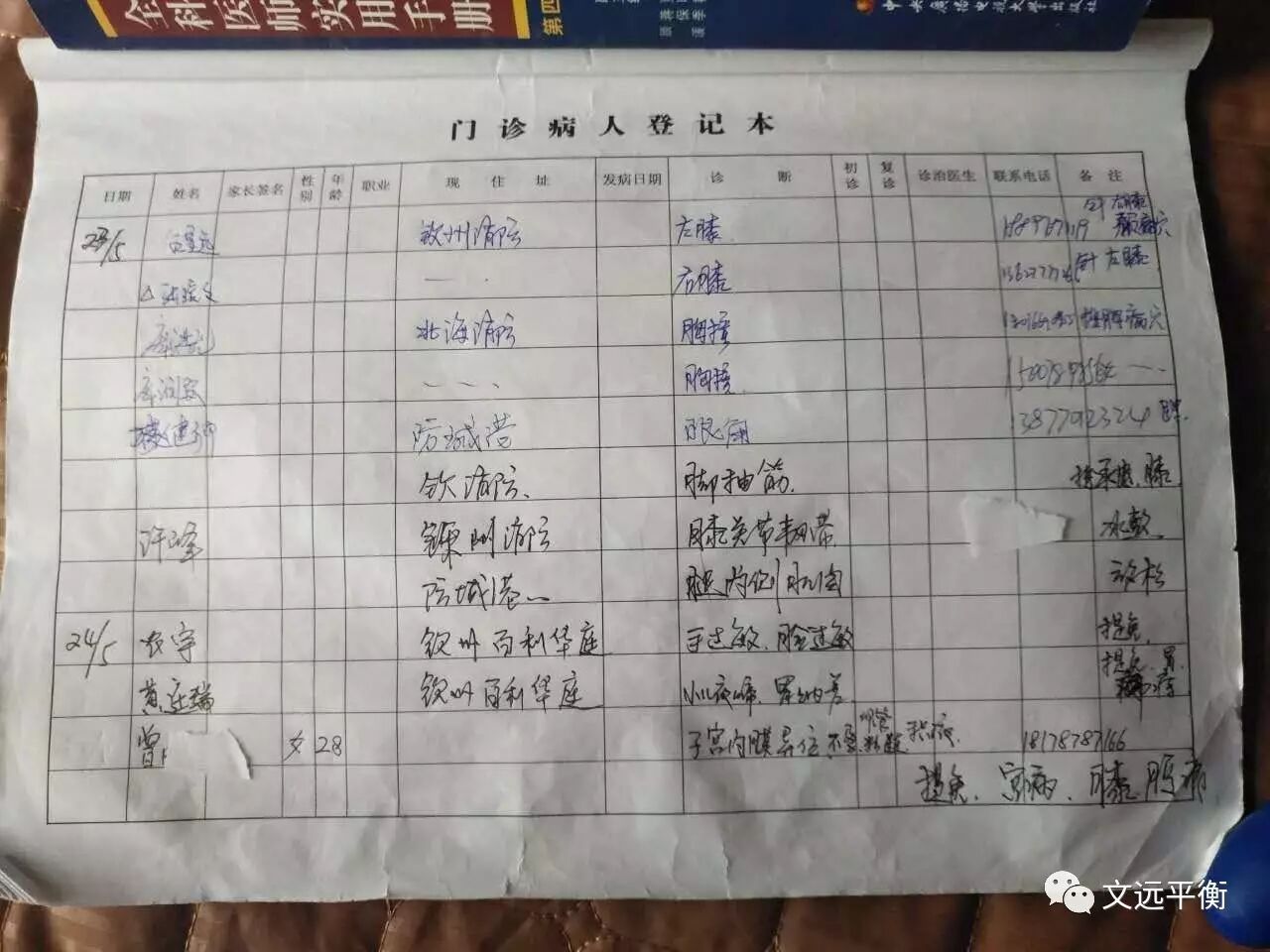 5月份北京回来,遵从师父王文远教授的万人义诊号召,回来后先在自己科室人员义诊,再让他们介绍她们的亲戚朋友每个人可享受10次的免费义诊。这时候科室曾医生就介绍她5月24号来扎针。