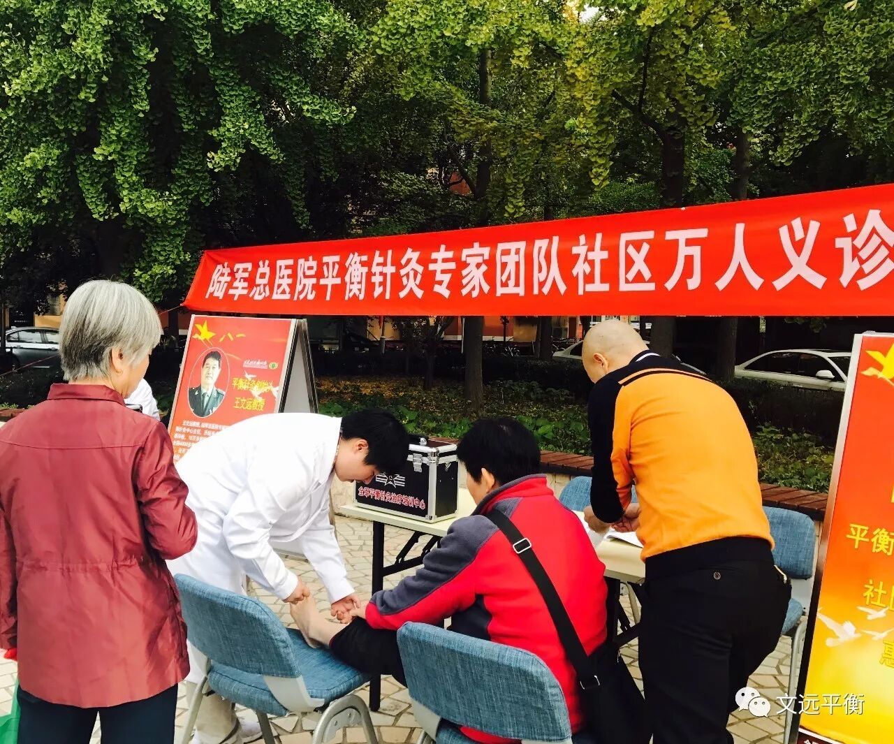 2017年10月17日,北京市朝阳区枣营北里社区开展“喜迎十九大,服务社区、奉献社区”活动,特邀陆军总医院专家组专家、平衡针灸创始人王文远教授携亲传弟子丁一帆、高志阳等进行了社区义诊服务活动。虽然气候寒冷,义诊群众100余人,受到社区居民的热烈欢迎和赞誉。