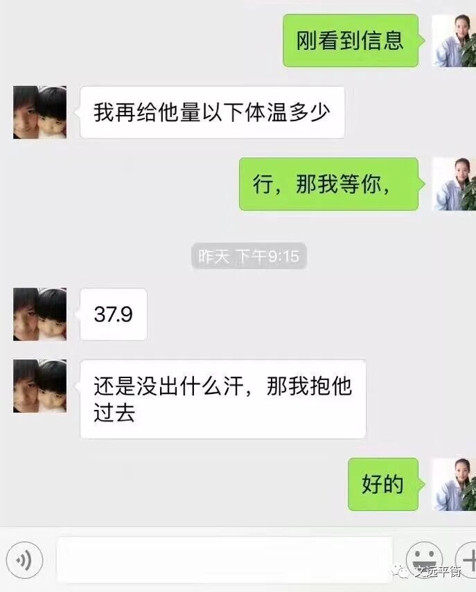第二天早上宝妈很开心,抱着二宝说:“你看,孩子今天好了,精神多了,刚才测体温36.9°C!”