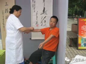 义诊结束后,患儿自费继续接受治疗,已经3年左右,每周1-2次,患儿各方面都进步很大,桶状胸全部正常,心尖区波动状完全消失,胆质反流性胃炎基本未发作。特别是语言障碍改变了很多。可以说出一些较简单的语言,他给我说:“放学了,老师,我回家了,再见,”,“谢谢婆婆王医生,针炙治好我的病,谢谢婆婆”,除一些简单说话外,还可以自理一些简单的生活,患儿每次来扎针时都和我握手、拥抱。看到此境我非常心慰。