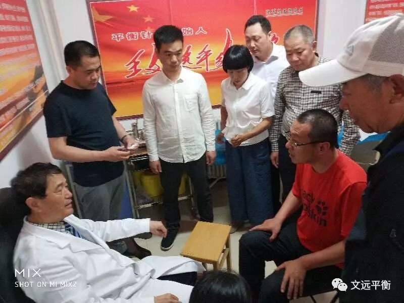 师父一到诊室,病人就进来了,师父祥细的询问了病人的情况和注意事项,然后就开始给病人进行平衡干预,弟子来了也不少,病人也很多,把师父围得严严的,还是张旭老师有办法,让弟子们分成几个小组,分时间进去帮忙,这样每个弟子都能近距离的看到师父平衡针干预技术。