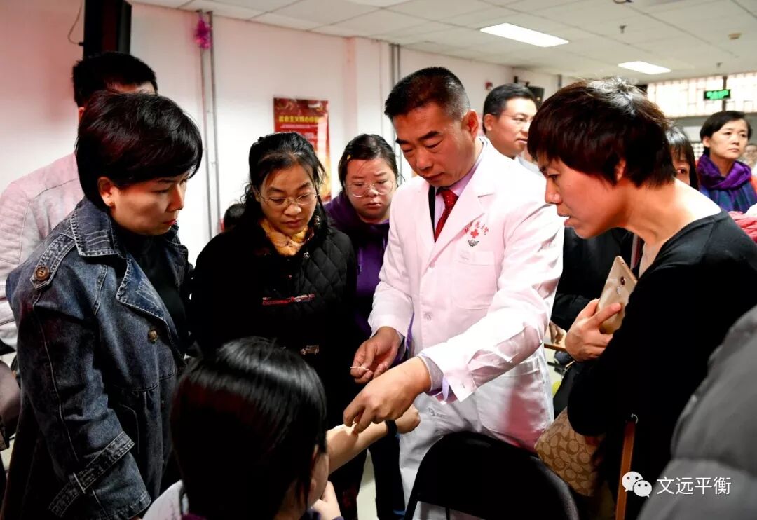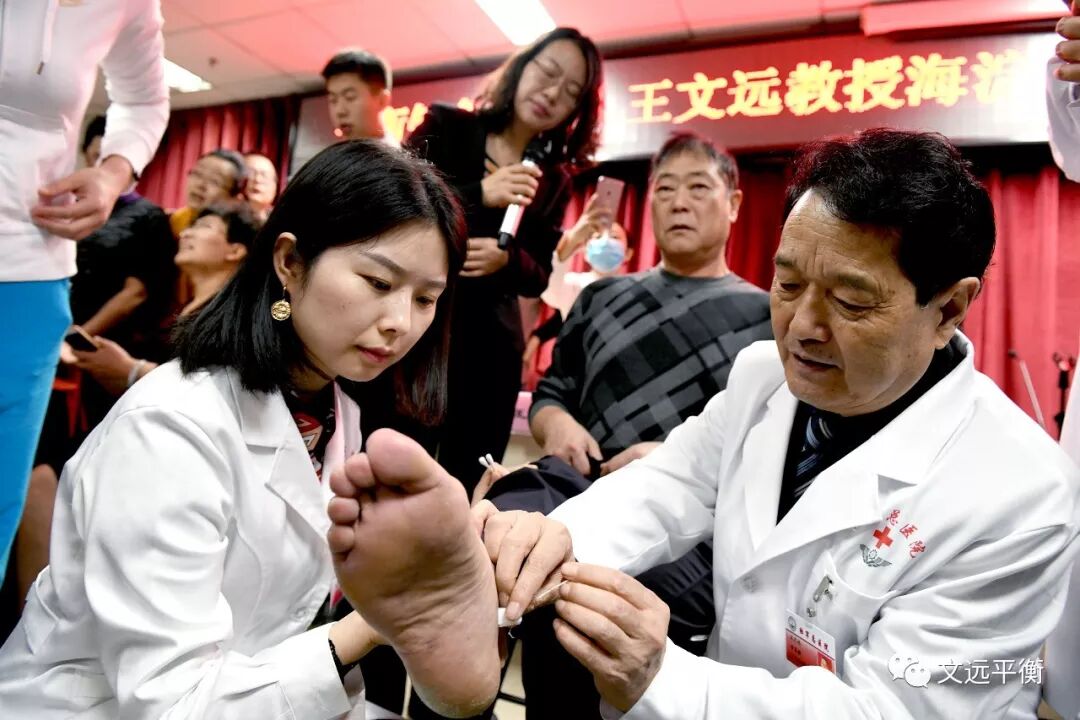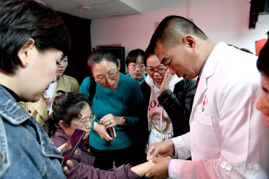 讲座结束后王文远教授率领团队张树杰、李传承、温禧卿、张建开展了现场义诊活动。100多名社区居民亲自体验了平衡针的神奇!