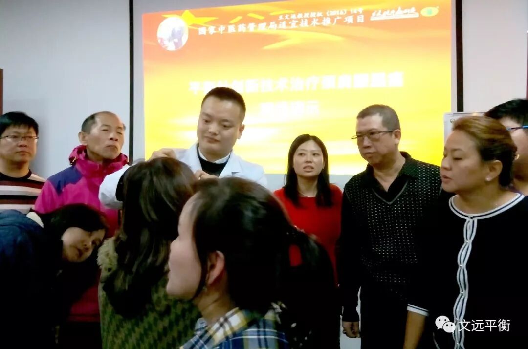 2018年12月6日下午,应四川省科学养生促进会会长、成都中医药大学天康研究所所长桑子冰教授的诚挚邀请,中国老年学和老年医学学会平衡针灸学分会副主任委员、成都市郫都区大成中医诊所王文远平衡针灸传承工作室主任杨鹏睿为来自印度尼西亚仲景中医学院华人学术交流团一行14人,在四川省科学养生促进会培训中心开展了“腰椎间盘突出症平衡针干预技术”中外学术交流活动。