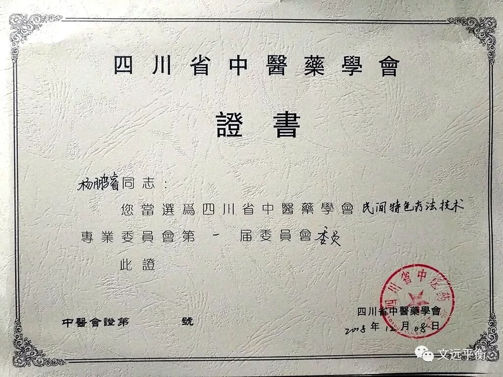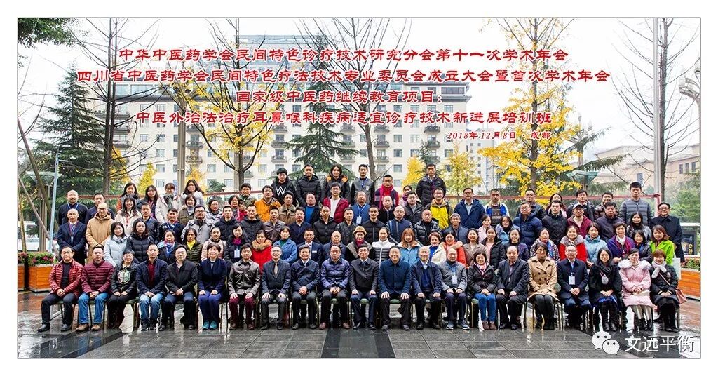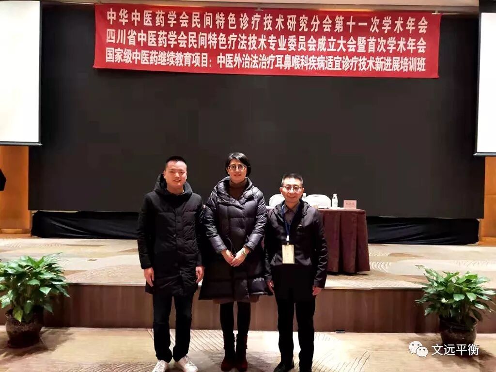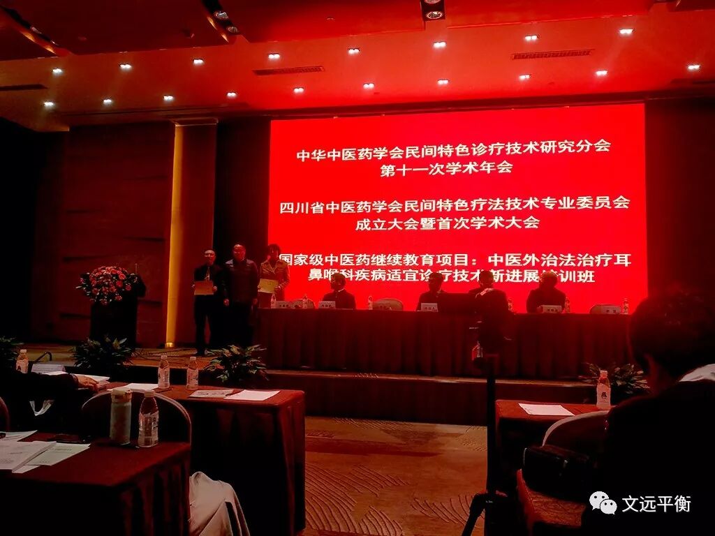 12月7日晚上八点,四川省中医药学会民间特色疗法技术专业委员会在成都岷山饭店会议室正式宣布成立。王文远教授学生、成都中医药大学博士生导师谢慧教授当选首届主任委员,王文远教授亲传弟子、成都王文远平衡针灸传承工作室主任杨鹏睿当选委员。会后,谢慧主任表示,王文远老师的平衡针技术疗效的确很好,我在临床中也经常使用,民间特色疗法技术专业委员会全力支持平衡针技术在四川推广,也希望平衡针技术团队能够经常参与学会组织的各项学术交流和公益义诊活动。