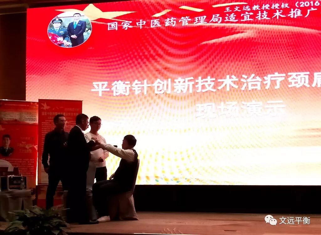 平衡针灸创始人王文远教授西藏亲传弟子、中国老年学和老年医学学会平衡针灸学分会副主任委员、成都王文远平衡针灸传承工作主任杨鹏睿代表平衡针灸学科参加了此次大会。杨鹏睿向大会作了题为 “腰椎间盘突出症平衡针干预技术” 学术报告,同时进行平衡针创新技术治疗颈肩腰腿痛现场演示,与会代表在现场体验了平衡针的神奇疗效,引发了阵阵掌声。