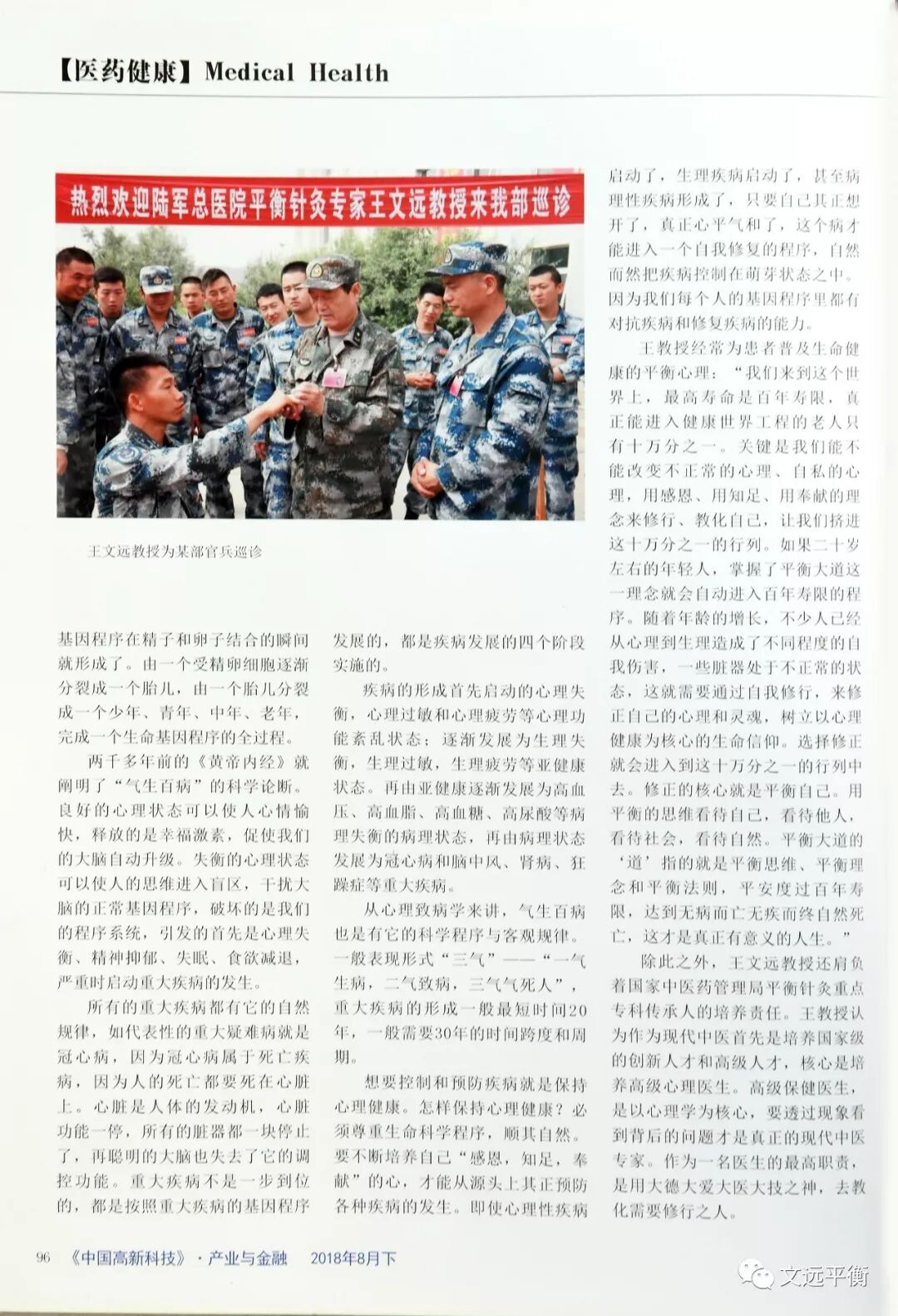 王教授经常为患者普及生命健康的平衡心理:“我们来到这个世界上,最高寿命是百年寿限,真正能进入健康世界工程的老人只有十万分之一。关键是我们能不能改变不正常的心理、自私的心理,用感恩、用知足、用奉献的理念来修行、教化自己,让我们挤进这十万分之一的行列。如果二十岁左右的年轻人,掌握了平衡大道这一理念就会自动进入百年寿限的程序。随着年龄的增长,不少人已经从心理到生理已经造成了不同程度的自我伤害,一些脏器处于不正常的状态,这就需要通过自我修行,来修正自己的心理和灵魂,树立以心理健康为核心的生命信仰。选择修正就会进入到这十万分之一的行列中去。修正的核心就是平衡自己。用平衡的思维看待自己,看待他人,看待社会,看待自然。平衡大道的‘道’指的就是平衡思维、平衡理念和平衡法则,平安度过百年寿限,达到无病而亡无疾而终自然死亡,这才是真正有意义的人生。”