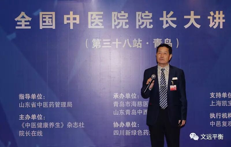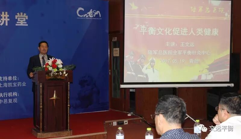 2017年5月19日上午,全国中医院院长大讲堂在山东青岛召开,陆军总医院专家组专家、平衡针灸创始人王文远教授受邀作为主讲嘉宾为全国各地参会的医疗界同仁做主题讲座——《平衡文化促进人类健康》,获得与会的200多名代表及各大中医院院长的一致好评。