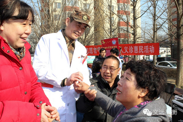 北京军区总医院专家组专家、平衡针灸创始人王文远教授亲自率领由亲传弟子于波(济南军区)、李传承(北京武警)、张书灵(军区总院)、徐立明(山东)、谢持斌(河南)、刘寒玉(北京)、王琴(河南)、刘馨阳(辽宁)、吴骁(陕西)、辛玉玲(北京)、马先博(义诊办公室)、李渊(山东)、张建(义诊办公室)组成的平衡针灸专家医疗队为辖区居民进行了义诊300余人,受到社区居民的高度赞誉!
