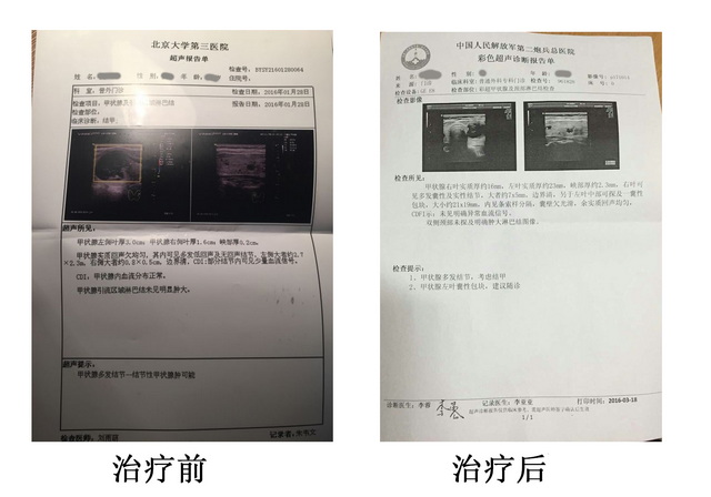 7主诉:宋某是一名教育工作者,左手麻木十多年,左側甲状腺肿块三年以上,有增大现像,北京大医院诊断甲状腺肿块,现在虽然有增大趋势但不用手术,观察,再大再手术。