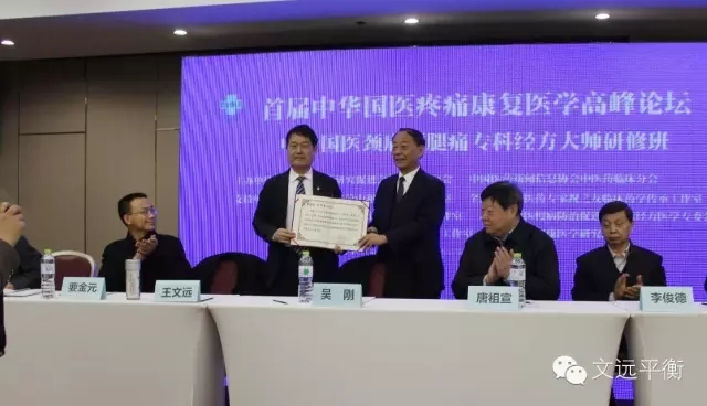 在开幕仪式上,北京中西医慢病防治促进会常务副会长蔡顺利教授宣读了“北京中西医慢病防治促进会 全国疼痛医学康复专家委员会”成立文件,光明中医主编杨建宇教授宣读专家委员会任职名单,王文远教授担任会长一职,由国医大师唐祖宣教授为其颁发聘书。