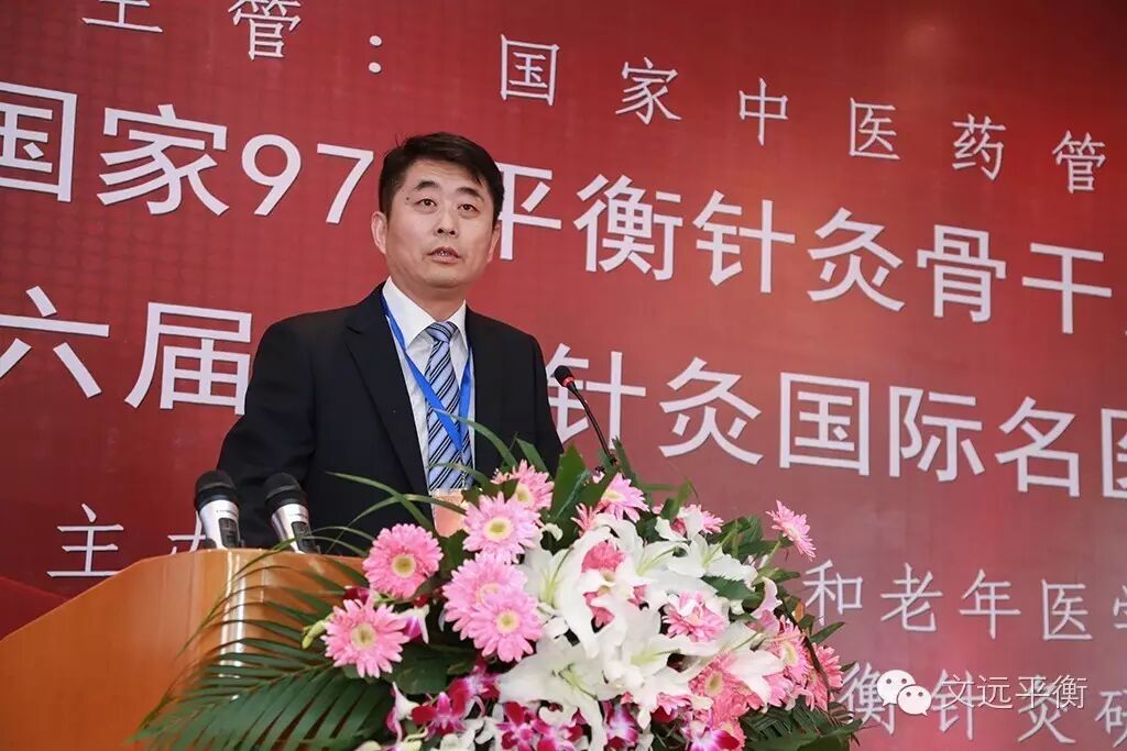 国家中医药管理局中医药科技成果推广中心推广处范劲松处长做了重要讲话,他回顾了从97年第1次考察平衡针灸开始到向全国推广的过程,对平衡针灸学科的发展和取得的成绩充分的肯定和高度评价。范劲松处长认为平衡针灸疗效的显著性是平衡针灸学科获得社会效应和良好口碑的重要支撑,特别是积极响应国家中医药管理局的号召,通过开展培训和义诊,让平衡针灸技术真正走入农村、基层,社区,为医患关系的和谐建立实现了真正的良性循环,并对平衡针灸创始人王文远教授医德医术的传承精神表达由衷的赞赏。范处特别指出,在最近全国卫生与健康大会中习近平主席的重要讲话“没有全民健康、就没有全面小康。推进健康中国,是我们党对人民的郑重承诺”。平衡针灸是符合“健康中国”。