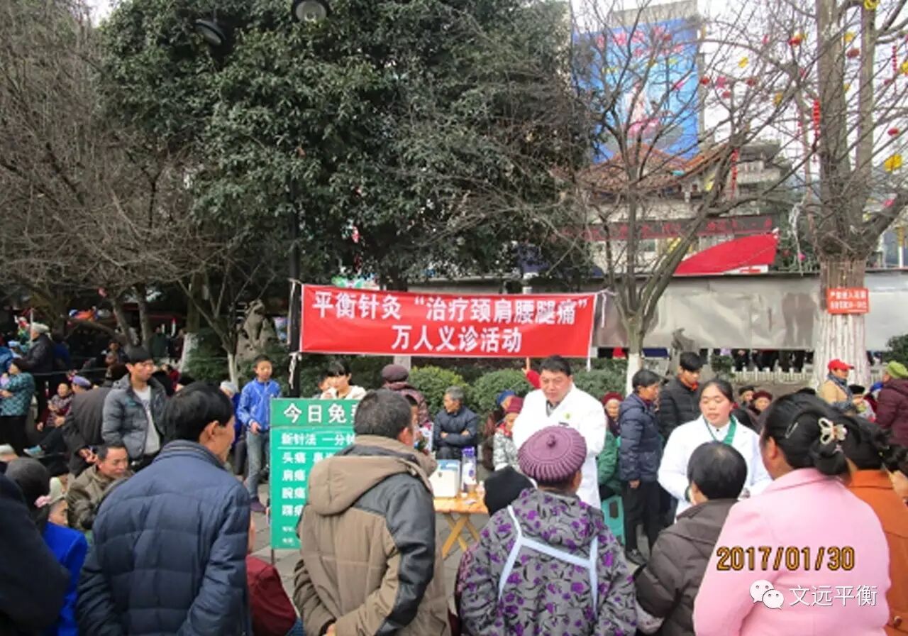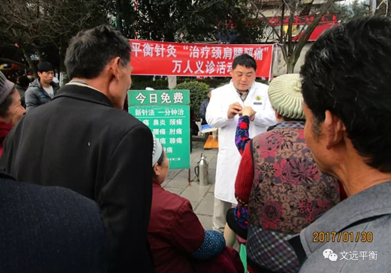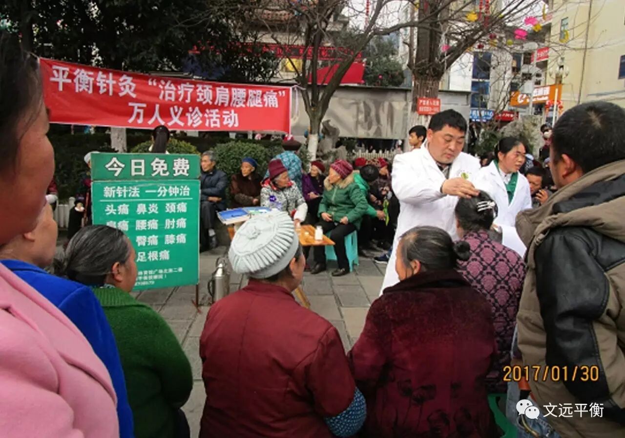 2017年1月30日在是大年初三,北京陆军总医院平衡针灸创始人王文远教授亲传弟子姜登齐秉承“平衡针灸,源于众生,悬浮济世,鞠躬尽瘁”的会训。在云南省威信县扎西体育广场举办了“平衡针灸万人义诊”活动。34人前来参加,男的8人,女的26年龄最小40岁,最大78岁。受到了群众的热烈欢迎。