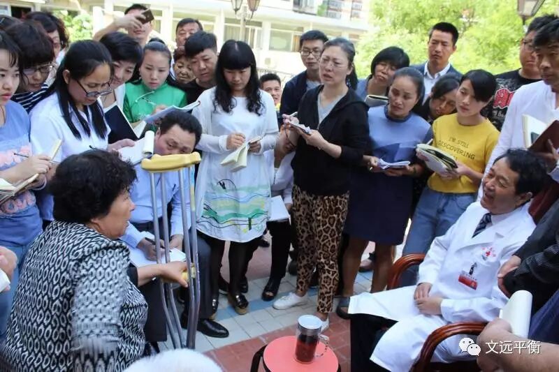 上午9时,师父步伐稳健,神采奕奕的来到专家门诊,看到弟子们很是高兴,弟子们热情的向师父问好。看到来的弟子比较多,天气炎热,为保证教学效果,师父决定,把专家门诊由室内搬到室外,成立临时露天大课堂。在明媚的阳光和绿荫的衬托下,现场充满了祥和与温暖。弟子们紧紧的把师父围在中间,聆听师父的谆谆教诲。本次来京跟师侍诊的亲传弟子有38人,年龄最少20岁,最大的68岁,他们来自全国20多个省市自治区,最远的有来自西藏和新疆的亲传弟子。这是近年来跟师人数最多的一次,也是第一次在室外组织师承教学。更加具有里程碑意义的是,这是平衡针灸创始人王文远教授首次全面推出现代中医脑文化体系后的第一次师带徒临床教学,他标志着现代中医创新技术迎来了生命科学的春天。