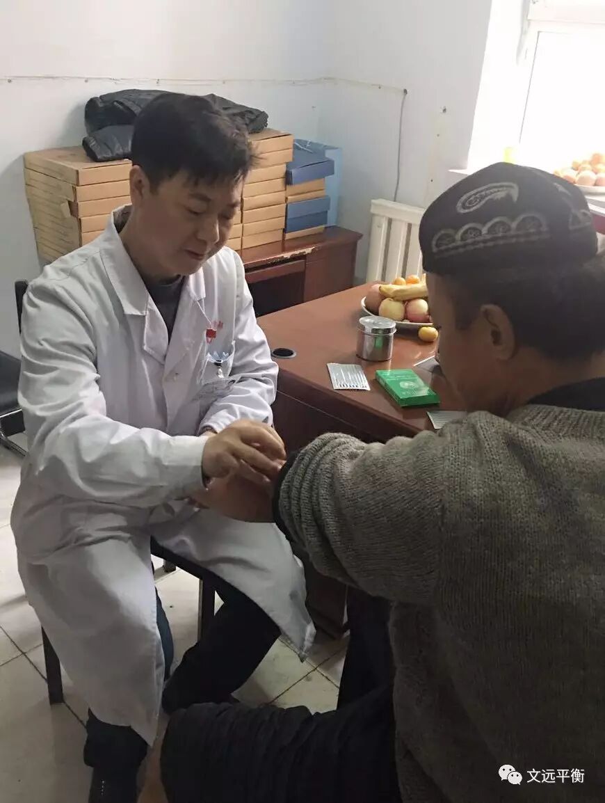 亚生见到我们,得知我是伍超龄医生的师哥,患者很感动地说:〝这两年一直奔波在治病的路上,花光了家里所有积蓄,政府给了低保,解决了家里吃饭问题,但是天天躺在床上,生活不能自理,手抬不起来,走路不稳。我今天能自己走来见到伍医生的师哥,全是平衡针的功劳!患病两年时间,什么方法都治过了,我还是没有站起来,是平衡针让我站了起来,平衡针让我知道生病的真正原因是生气引起的。你师弟伍超龄医生第一次帮我扎针后,我的手和腿就有了变化,感觉变轻了,有劲了!我就相信平衡针可以把我的疡治好。现在手可以轻松举过头顶了,走路也稳了,我今天特意过来让徐医生看看平衡针的效果,也是来感谢平衡针弟子伍医生。我去不了北京,不然我会亲自到北京去感谢伍医生天天念着的师父王文远教授的,平衡针拯救了我思想、挽救了我的家庭,还免费给我治疗,感谢!感谢!今天是我们维吾尔族的肉孜节,也就是相当于你们汉族的春节一样,你们今天义诊工作结束了,一定要到我家做客,我会一直在大门口等你们到来,伊斯兰教的人不说假话。〞