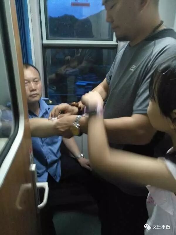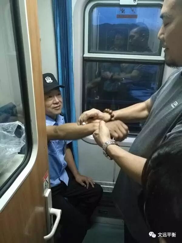 石俊师弟在列车上刚想躺下准备睡觉,忽然听到列车上广播找医务人员到9号车厢,有一位肚子痛病人需要医生前來救治。石俊医生马上从卧铺下來,拿上针灸针、棉球,带着女儿石大宝一同从13号车厢跑步奔到9号车厢。看到列车长、几位乘警、列车员已在等候,得知:患者中年男性,约50岁,主诉肚子疼痛厉害。可见患者抱腹状,面色嘴唇发白。石俊向大家简述了恩师王文远教授创新的平衡针〝绿色、安全、单穴、三秒见效〞之技术特色,立给予胃痛点进行干预,不足3秒钟出针,患者即刻疼痛消失,合掌表示感谢!
