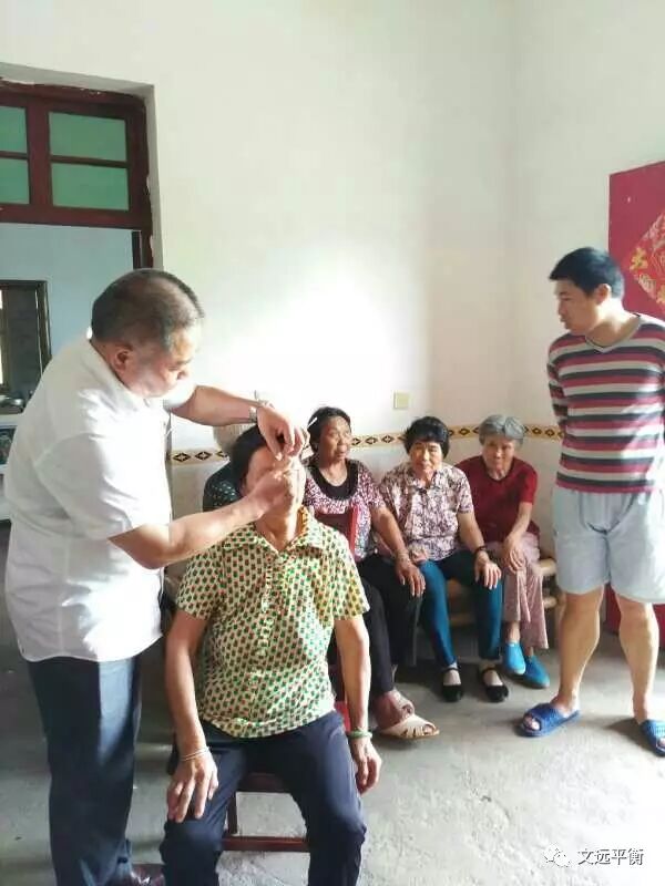 午餐后,一行人在村民们的带领下,来到患者家中,挂上义诊横幅,摊开义诊器材,放弃了午休时间,两位王文远教授的亲传弟子便开始了热情的接诊和精心的治疗,这时的屋内屋外都是患者和询问了解平衡针的群众。经过刘柏林、徐夏保两位平衡针灸亲传弟子的精心治疗,患者们个个露出了满意和幸福的笑容。