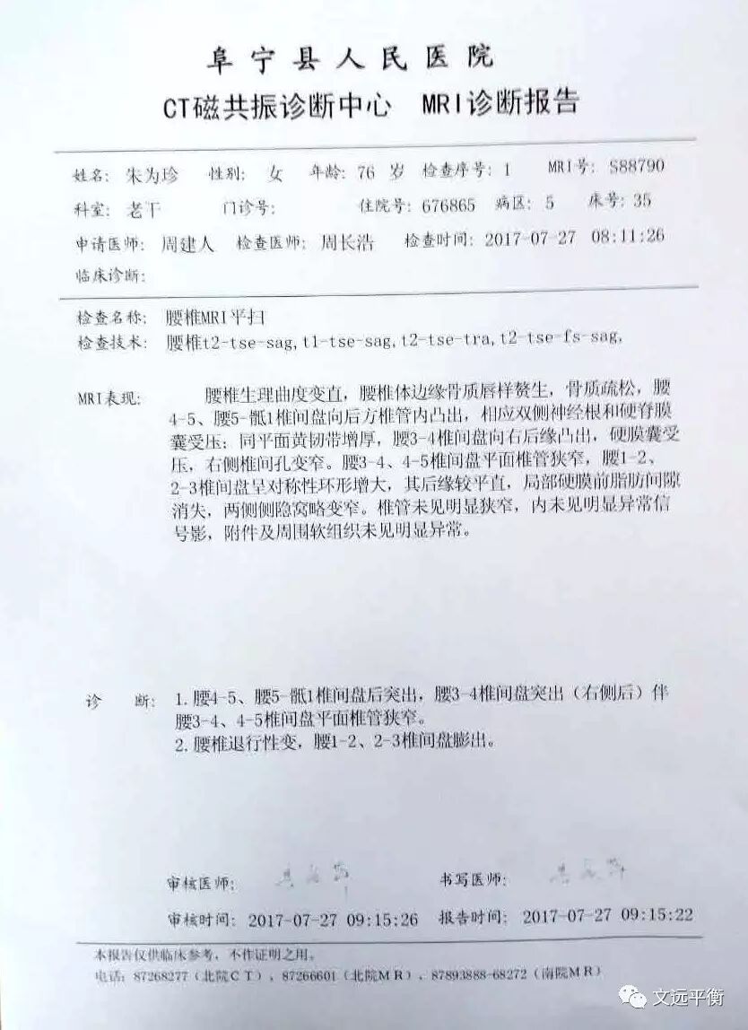 出院后立刻开车来到我的平衡门诊,下车时是朱为珍老人的儿子把她老人家抱到我的诊疗床上。