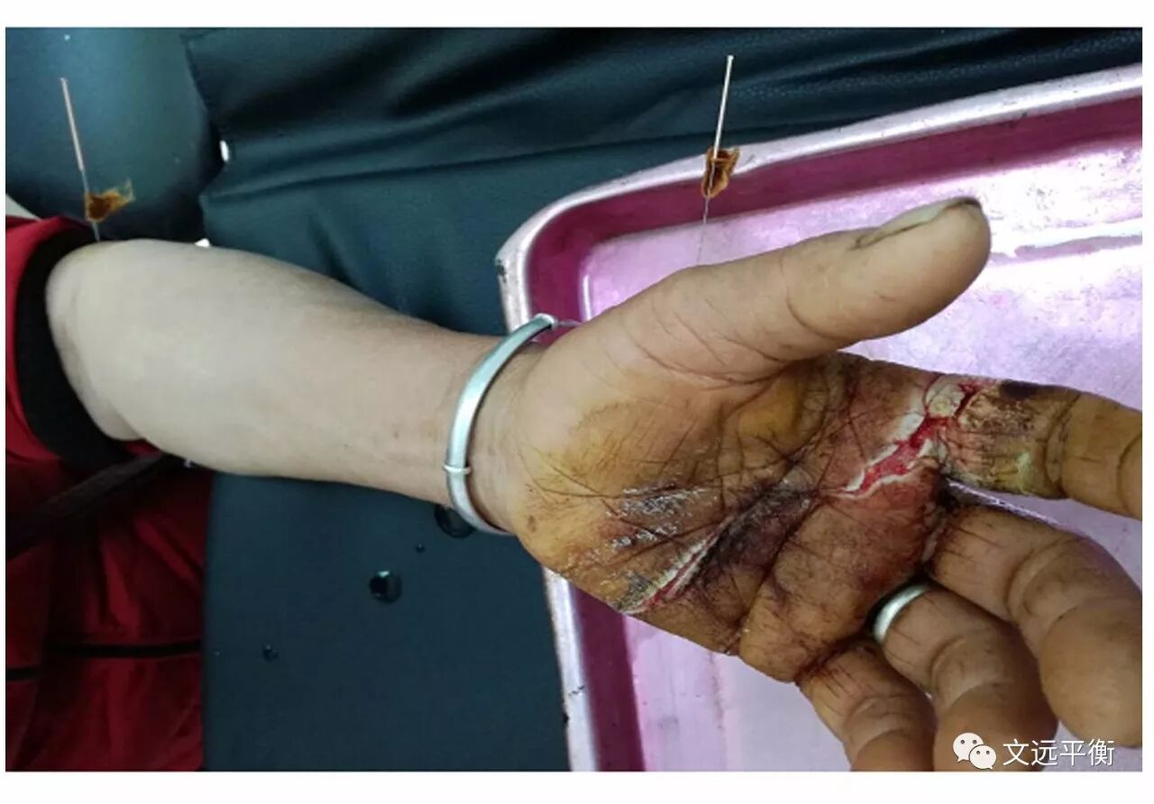 过后几天电话回访,她说:伤口愈合的很好,手掌不痛了,已经如前一样用手做事。感谢我的平衡针刺干预治疗。