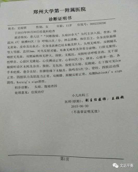 1、7现病史:患者于4年前阵发性头疼,每天疼痛50多次,无放射,无呕吐,无畏光,严重影响学习和睡眠。不愿意和任何人接触,喜欢一个人呆在家里。2015年12月到北京爱育华妇幼儿医院就诊,MR:双侧大脑半球、小脑、脑干未见异常。B腺垂体饱满,上缘稍隆起,高约9mm。郑州大学第一附属医院诊断:头疼查因。曾服中药和西药无疗效,药物不详。