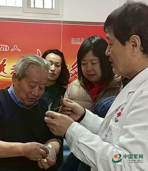 这位抗战老兵紧紧握住王教授的手激动地说:军队医院还是我们老兵的医院。