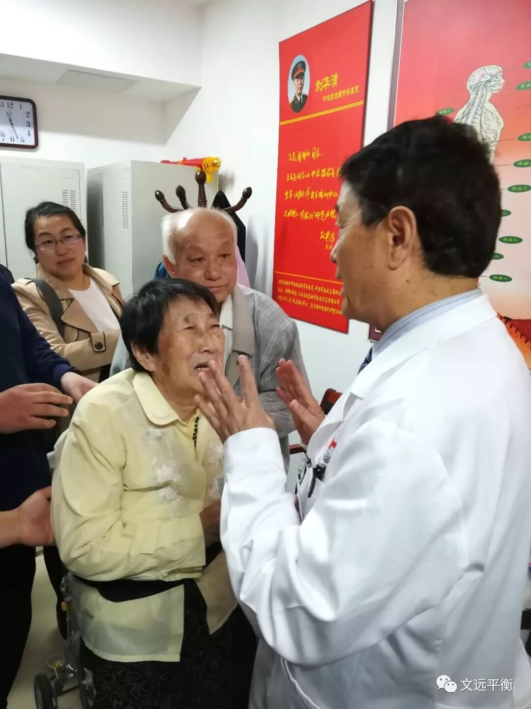 众多就诊患者中,有一位七十多岁的老人让我印象最为深刻,她进入诊室时,是坐着轮椅由家人推着进去的,这是一位腰腿疼了很久,到目前已经疼的站不起来的患者,教授听完她的症状讲述,对其进行了平衡针治疗,出针以后,教授让她活动一下腰部,家人扶着站起来了,然后她又坐下去,不让家人扶,要试试自己站起来。等她慢慢站起来以后直接哭了,说腰不疼了,困扰自己这么久的顽疾被教授一次针刺治疗就不疼了,激动的一直感谢教授。教授告诉她和家人,现在不疼了并不代表治愈了,只是见效了,得按疗程治疗,一定要注意不要生气,不要疲劳和受凉!诊疗结束,患者走的时候也不让家人扶,竟然自己走出去了!此情此景,让我想起了我用平衡针给我九十多岁的奶奶第一次治疗的情景,奶奶因中风导致身体左侧肢体行动受限,第一次平衡针治疗之后,奶奶就高兴的不让家人搀扶在客厅里走了两圈,真是何其相似啊!别说她们感谢教授了,连我自己都激动的不行,通过这些人和事,真真切切的能感受到教授的伟大!真的庆幸自己结缘于平衡针,更有幸跟师教授学习平衡针。