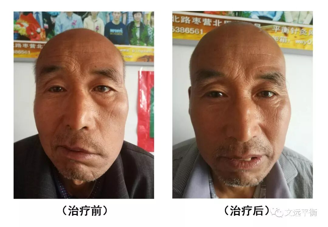 1.8现病史:患者自述2018年2月17日,春节期间和亲人喝酒后受凉,出现左侧口眼歪斜,面部麻木。曾到庆阳市中医院就诊,诊断面神经炎,给予针灸及服中药治疗2月余,未见明显效果, 听人介绍来我平衡针灸工作室接受现代平衡针灸治疗。