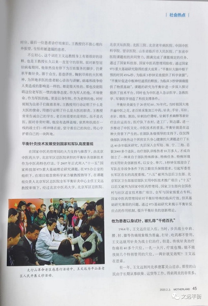 不忘初心,这个词在王文远教授身上有着很好的诠释,也是王教授长久以来一直坚守的原则。面对新型冠状病毒期间,他依然没有停下为百姓服务的脚步,仍秉承平衡针灸,源于众生,悬壶济世,鞠躬尽瘁的大医精神,为异地求医的患者耐心诊治与讲解。病毒和战争给人类造成的影响是一样的,都是毁灭性的,那也没能阻碍这位老军医一惯的做事态度。作为军人的他,不辱使命,作为军医的他,更是以身作则,作为老师的他,时时刻刻为众弟子们做着表率。王教授用行动证明了什么是大医的使命,用德行证明了什么是大医的职责。王教授常常告诫自己的学生,老百姓需要的是明医,而不是名医,面对非常时期,他没有选择退缩,依然和抗战在线的战士们一样冲锋在前,坚守着自己的岗位,用心守护着自己的一块阵地。