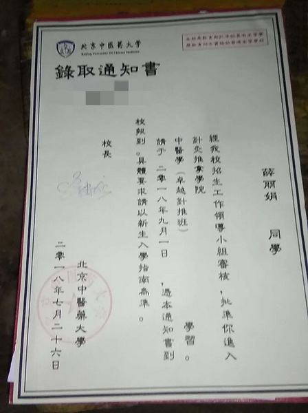 ● 答:这是我以前治疗的一个高考生,运用了平衡思想开导她的焦虑,用平衡针灸干预她的病情,取得了很好的效果。这是她专门写的感谢信和录取通知书。