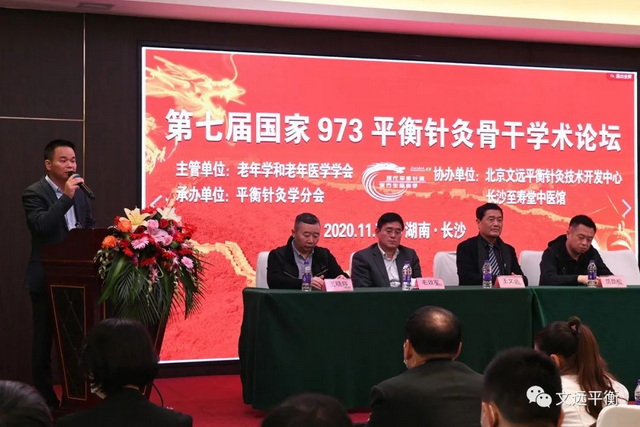 2020年11月7~9日,由中国老年学和老年医学学会平衡针灸学分会主办的第七届国家973平衡针灸骨干学术论坛在湖南长沙举办。国家中医药管理局推广交流中心范劲松主任、平衡针灸学创始人王文远教授,平衡针灸学分会主任委员毛效军博士,副主任委员王晓辉,覃小兰,于波,白冬主任,湖南省针灸学会副会长杜革术教授,与来自全国70余名平衡针灸学科骨干参加论坛。
