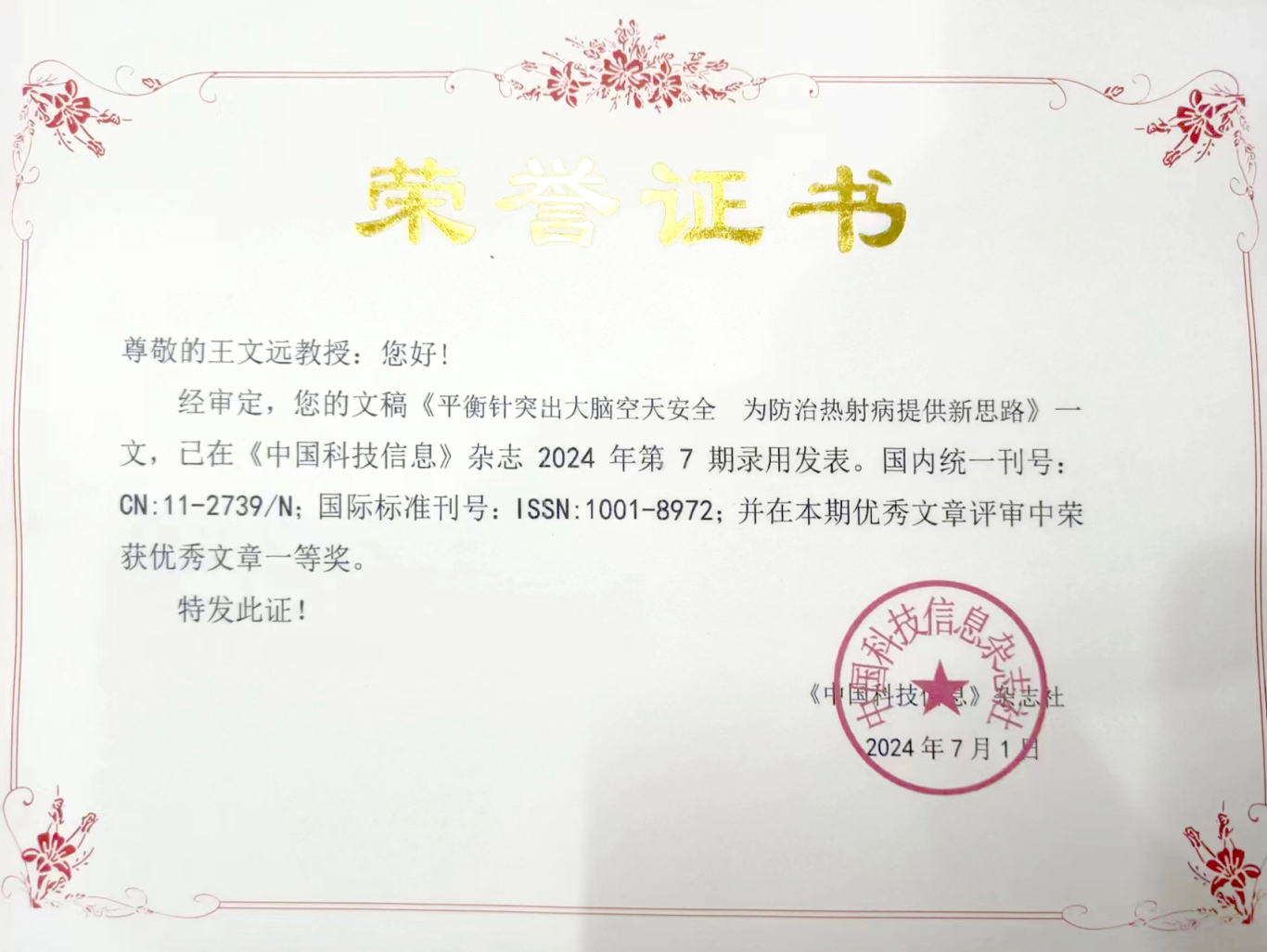 热射病包括中暑通常发生在体质相对较弱,免疫功能下降的人群,核心因素与心理因素有关,体现在焦虑抑郁和失眠,心理的不正常状态影响了现代脑的空天安全,造成免疫调节能力较低,内分泌失调,容易产生疲劳,在热环境的影响下,身体的热量散发不出去引起中暑甚至热射病。平衡针预防的核心定位在大脑,针对现代脑的空天安全,清除现代脑的不良信息,保证食欲中枢和睡眠中枢的正常运转,从而提高了自身免疫系统的功能,为加强在热环境中自我调节创造了条件。