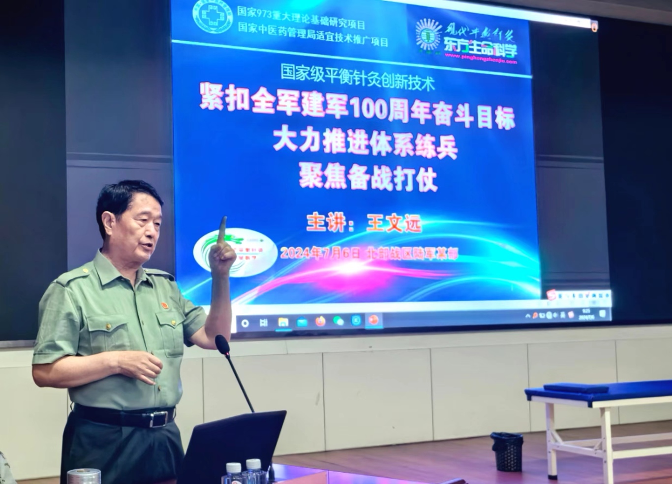 平衡针灸创始人解放军总医院第七医学中心老专家王文远教授,应北部战区陆军部的特别邀请,率领亲传弟子马忠立,郭月玲主任,在徐黎明、庄照来医院老领导的组织协调下,于2024年7月4~8日,在祖国北疆边防某部开展了“国家级平衡针灸创新技术扎根军营服务官兵”的传经送宝活动,受到了广大官兵的欢迎。