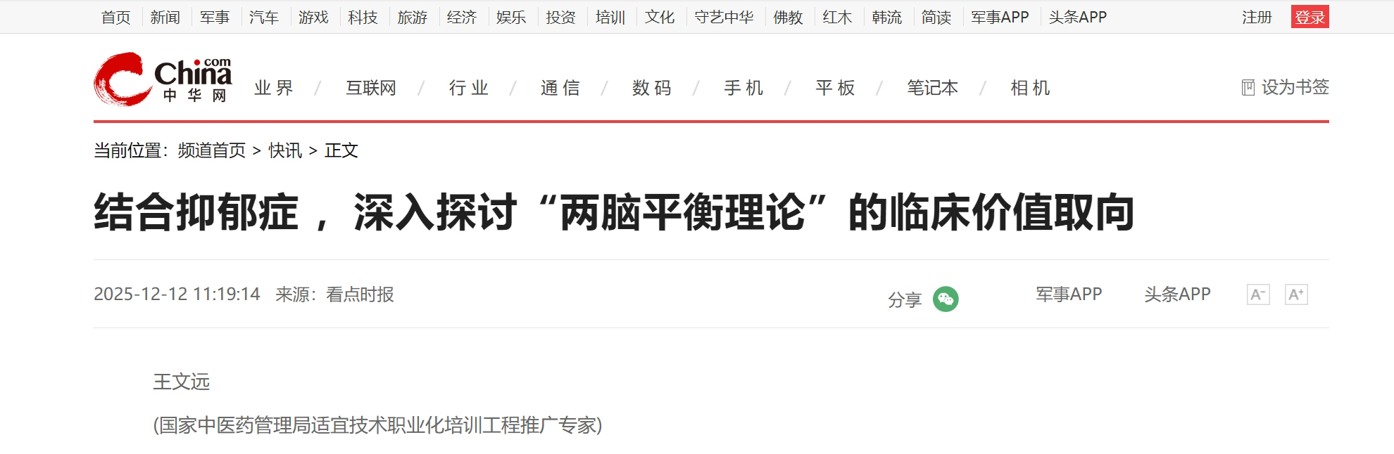 “两脑平衡理论”为理解生命健康与疾病机制提供了全新的脑科学视角,而平衡针灸以其独特的干预逻辑与明确的科学机制,成为连接理论与临床实践的重要桥梁。从现代脑的心理升级到原始脑的生理优化,从双重调控体系的构建到三级干预机制的落地,平衡针灸不仅为抑郁症等心理精神疾病的治疗开辟了高效路径,更在疾病预防与健康保健领域展现出广阔应用前景。未来,随着脑科学研究的持续深入与临床实践的不断积累,平衡针灸将进一步完善理论体系、优化干预方案,为更多人实现“两脑相对平衡”、守护身心健康提供更坚实的支撑,持续为中医药适宜技术的创新发展与推广应用注入活力。