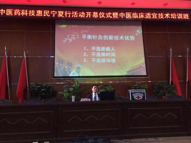 2014年11月15日上午,在国家中医药管理局、农工党中央科技工作委员会主办的《中医药科技惠民宁夏行活动》中,平衡针灸创始人、北京军区总医院专家组专家、全军平衡针灸治疗培训中心主任王文远教授应邀携北京武警部队孙超弟子,为宁夏回民自治区固原市进行《国家973平衡针灸重大基础理论研究报告专题讲座》。宁夏回民自治区固原市各县区200余名医师参加了培训。