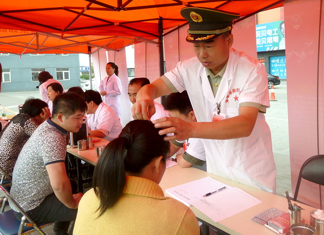 15日清晨8点,披着濛濛细雨,由平衡针灸创始人王文远教授亲自指派的13名亲传弟子组成的平衡针灸专家义诊团队在队长武警内蒙古总队医院副院长赵子会的带领下,进行了义诊前动员,着装整齐划一,精神抖擞的列队登车,前往王四营义诊现场。北京军区总医院东区的领导白晓鸣、王文远教授坐镇麦子店街道办事处的两个社会义诊活动。